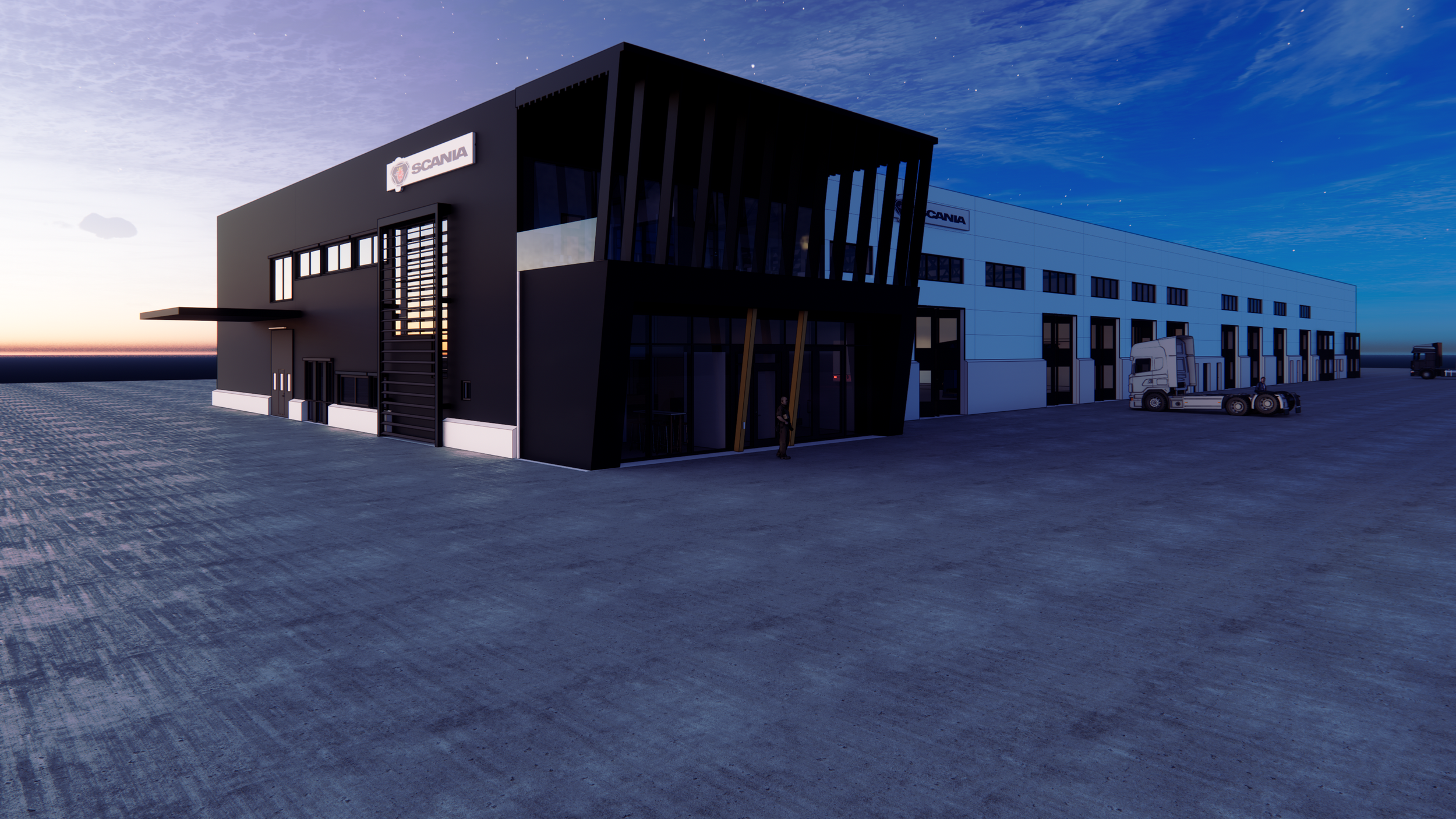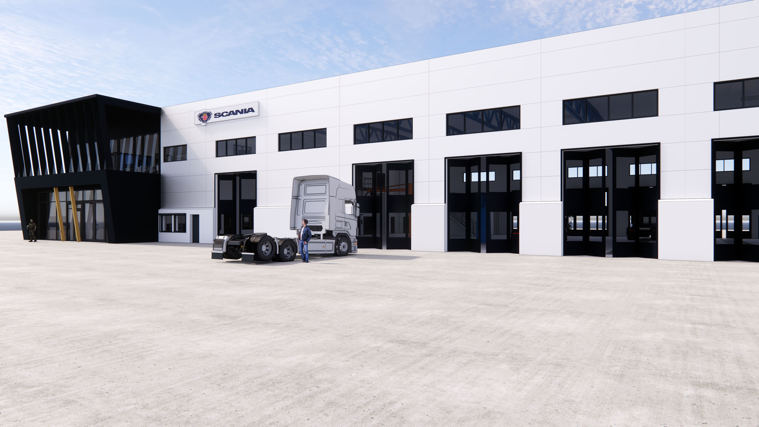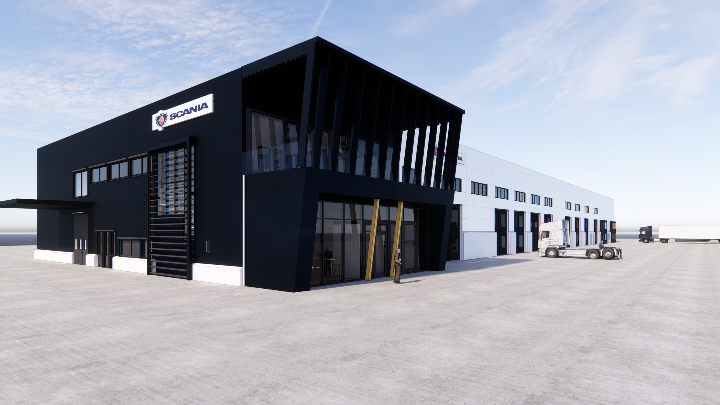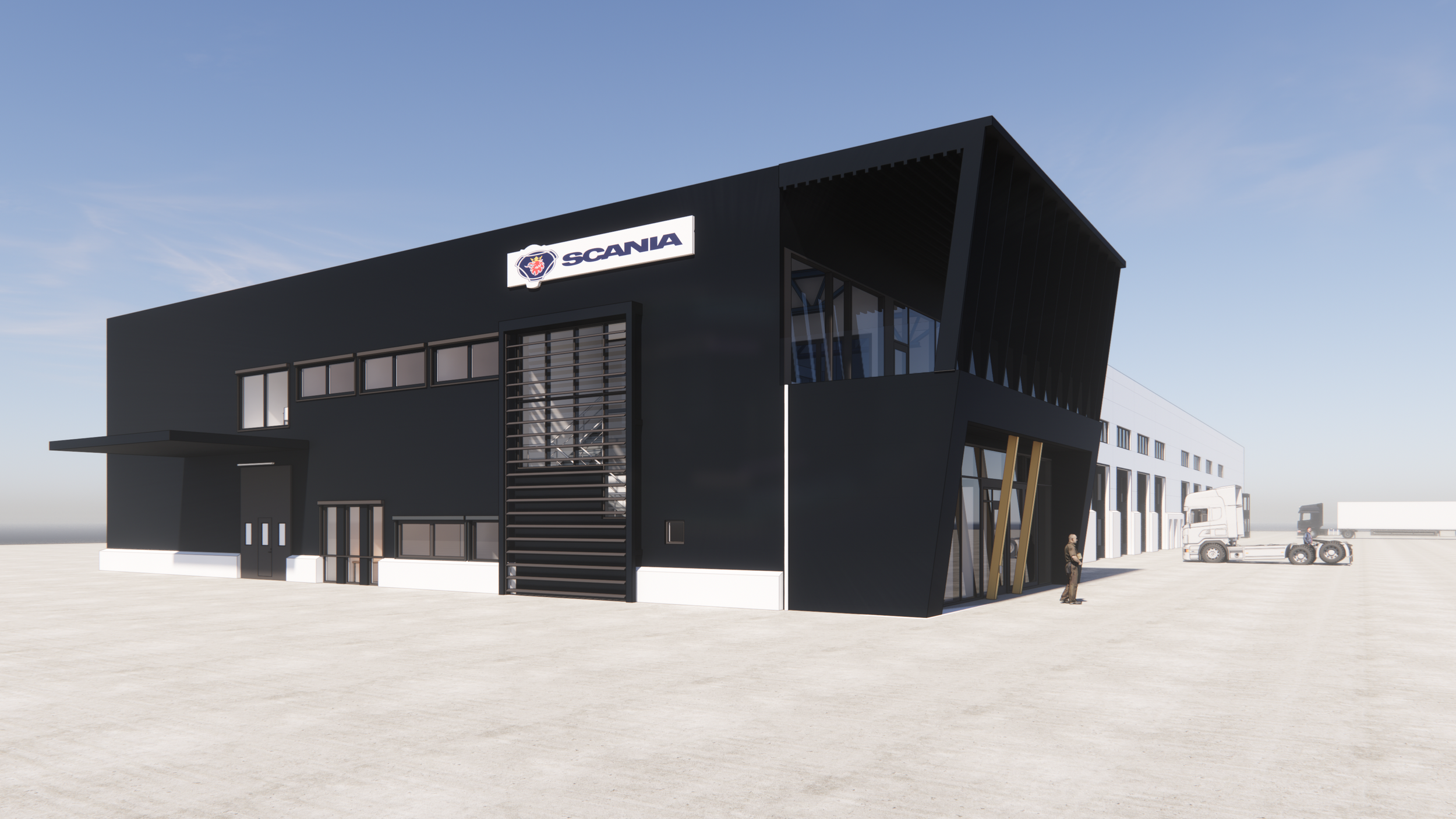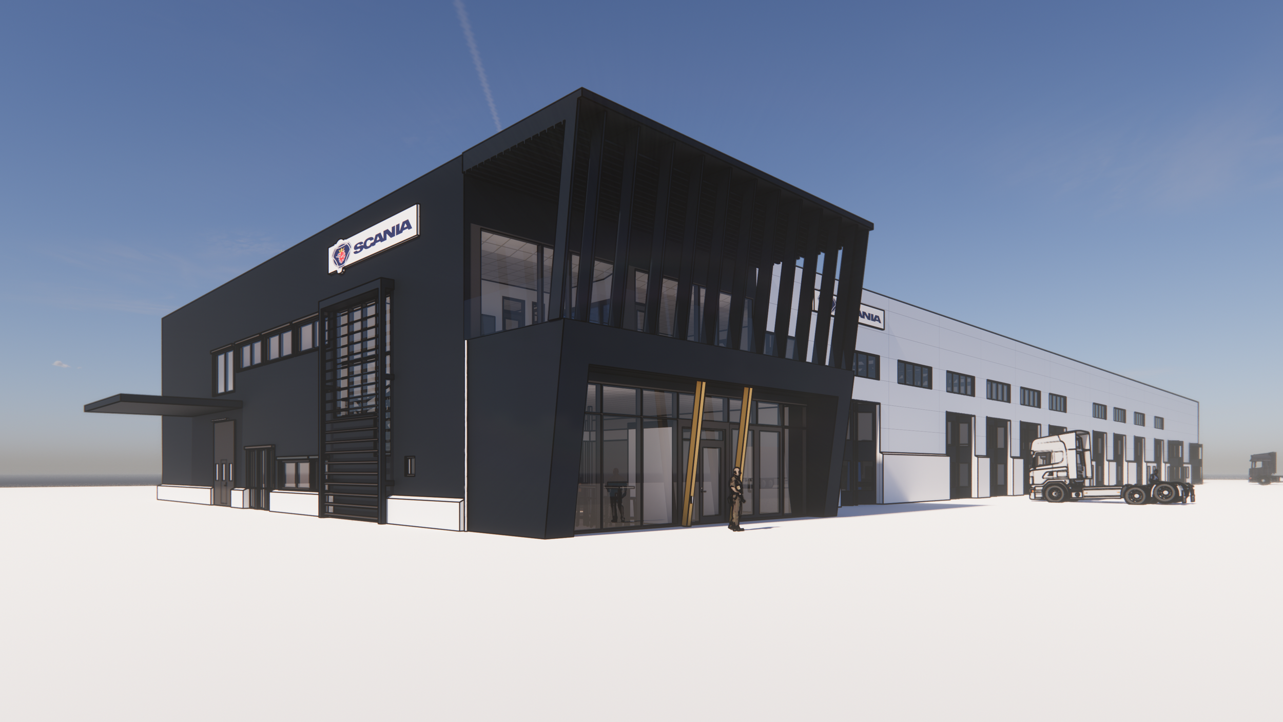 NymanWänseth är totalentreprenör för projektet och har via företagets samlade kompetens utfört både bygg och mark/anläggning i egen regi. Projektet är utfört enligt Scanias koncept.